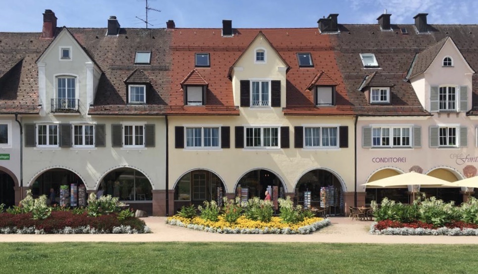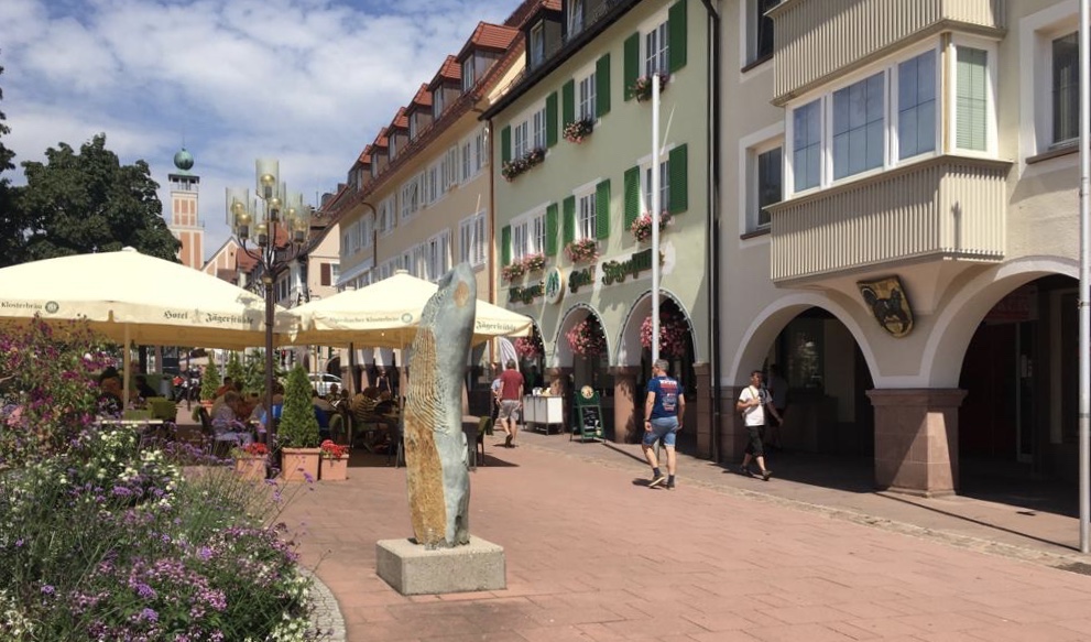 Was wollen wir auf dem Weg ansehen? Freudenstadt soll ein Kneipp-Kurort sein. Also nehmen wir mal diese Richtung. Wir starten am Ostrand des Schwarzwaldes und fahren Richtung Nord-Osten. Zuerst wird die Landschaft weiter, wir fahren auf einer Hochebene, für mich sehr angenehm. Dann wird der Wald wieder dichter und die Täler enger. Die kleinen Orte, durch die wir fahren, sind ziemlich gepflegt, wirken aber überwiegend verschlafen. Freudenstadt ist dagegen eine sehr quirlige Stadt mit zwei großen Marktplätzen. Alle Häuser um die beiden Plätze haben Arkaden mit darin befindlichen Geschäften. Man kann also schattigen Fußes shoppen, das ist im Moment sehr vorteilhaft.