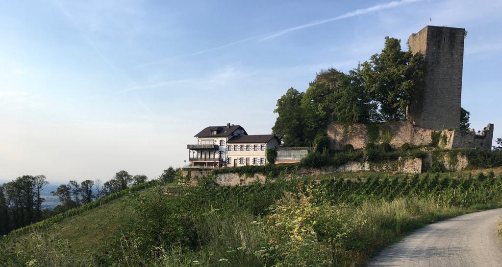 Jan hat uns auf der Burg Windeck bei Bühl, kurz vor Baden-Baden einquartiert. Eigentlich sehr malerisch inmitten der Weinberge, aber bei diesen Temperaturen kommt in der Nacht durch die kleinen Fenster kaum ein erfrischender Luftzug.