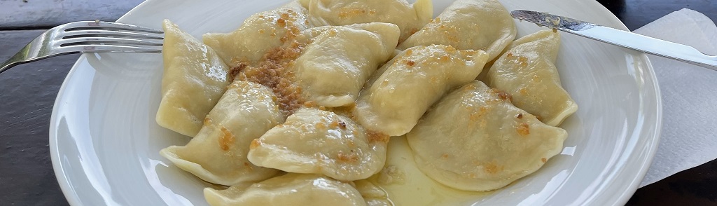 Eigentlich hatte ich die Route über Stettin gewählt weil ich vor Danzig noch kurz an die Ostsee wollte. Da die Ankunftszeit aber schon gegen 18 Uhr tendierte, habe ich mir das dann doch geschenkt. Stattdessen spätes Mittagessen irgendwo an der S6. Pirogen habe ich vorher noch nicht gegessen. Da die Karte ausschließlich in polnisch vorlag, weiß ich auch gar nicht was drin war. Ist wie bei Maultaschen, man will es letztendlich nicht wirklich wissen. Unter Strich war es mir etwas zu fettig.