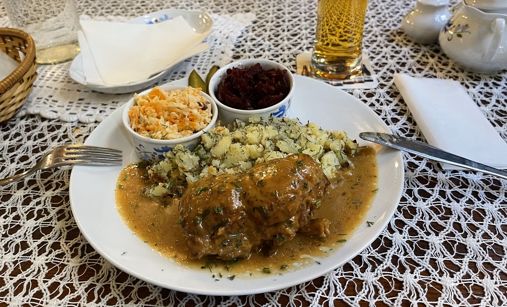 Ich lande dann doch in keinem der empfohlenen Restaurant sondern in der Taverna Mestwin, einem kaschubischen Restaurant wo dann auch wirklich nur polnisch gesprochen wird. Heringe mit Rosinen und Roulade mit Dillkartoffeln schmecken etwas anders als bei uns, daher um so leckerer.