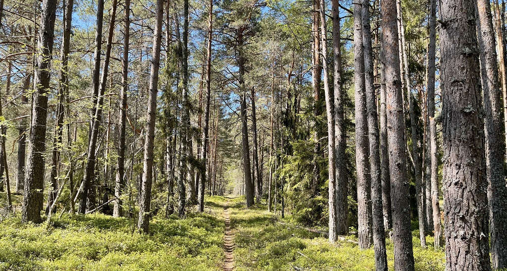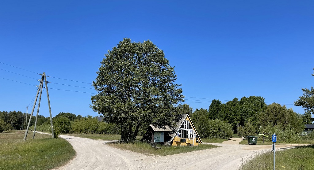 Der letzte Kilometer ist etwas anstrengender, der Sand wird weicher und eine schroffe Abbruchkante zum Meer verhindert ein näheres Fahren am Wasser. Ich fahre in den nächsten Ort und benutze den ausgeschilderten Waldweg. Der ist aber leider auch tiefes Geläuf. Es fängt mit einer breiten Schotterstraße an, geht aber schnell in einen sandigen Waldweg über. Fühlt sich schnell anstrengender an als am Strand. Im dritten Dorf entschließe ich mich dann doch die breite Straße zurück zu nehmen. Nachteil, wenn man die Straße am Tag zuvor mit dem Auto gekommen ist, man kennt schon alle Schlaglöcher und ausgebesserten Stellen und kilometerlanges geradeaus, ist auf dem Fahrrad anstrengender als im Auto langweilig.