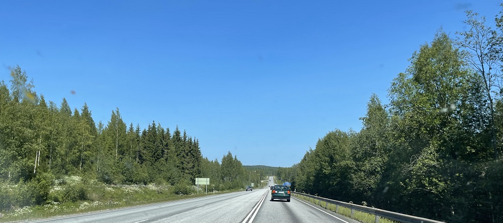 Ich bin ja heute morgen ganz blauäugig losgefahren ohne wirkliche Idee wo ich abends sein werde und wie wohl die Fahrt so wird. Doof das man der Siri auf der Fahrt nicht einfach schon mal was diktieren kann, sondern sich an alle Dinge erinnern muss. Fotos waren auch schwierig aus dem Auto. Die Fahrt fing mit viel Wald an, nördlich von Helsinki sind die ganzen Seen und es liegen keine größeren Siedlungen an der Strasse, diese sind wahrscheinlich eher Richtung Küste. Belebter wurde es erst nachdem ich mich wieder mehr der Ostsee genähert hatte, vielleicht ab Kärsämäki. Was es nicht gab sind deutsche Wohnmobilisten, die werden eher über Norwegen oder Schweden hochfahren, Finnland ist ein wenig ab. Ab und an ein Holz LKW aber sehr wenige, ist ja schließlich Sonntag.