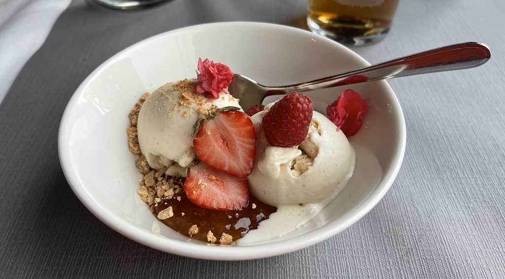 Zur Feier des Tages gönne ich mir das finnische drei Gänge Menü, Lachssuppe, Rentier und Eis mit Früchten. Danach muss ich doch mal Pläne für morgen machen. Ich fahre aktuell sehr auf Sicht, kann ich aber ganz gut.