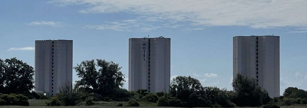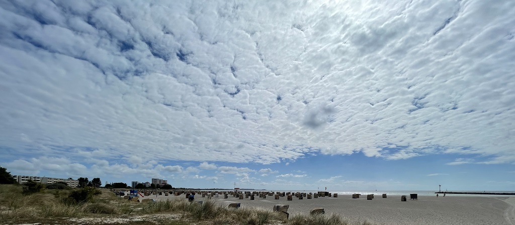 Morgens mache ich dann eine Runde an den Südstrand und bin in der tat wieder in den 70ern. Gleich werde ich von einer aufmerksamen Rentnerin sehr freundlich darauf hingewiesen wo es sich geziemt Fahrrad zu fahren und wo nicht. Was hab ich es vermisst. Optisch ist es auch etwas gewöhnungsbedürftig, da aber ausgebucht kann es nicht so schlimm zu sein wie ich es finde.