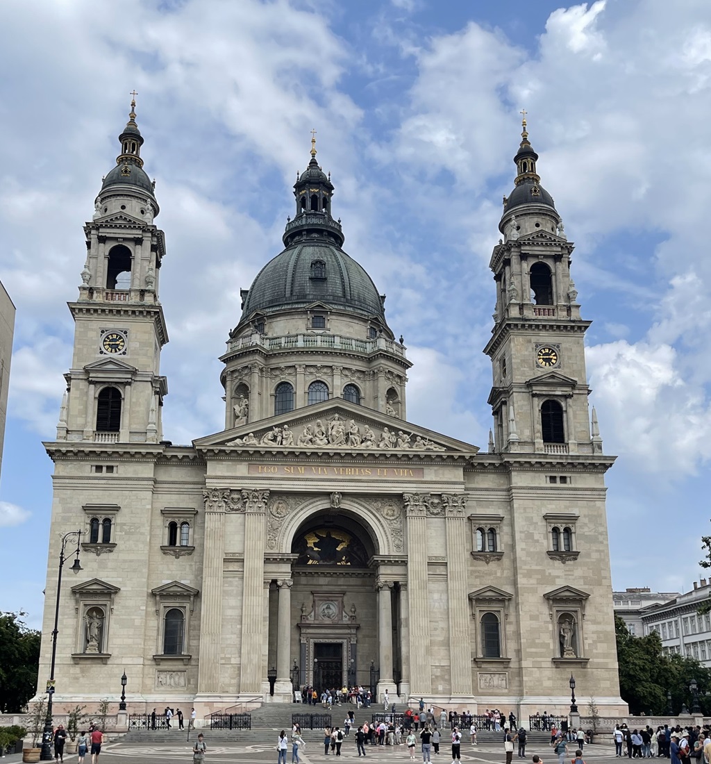 Mein Hotel ist direkt bei der St. Stephans Basilika. Ich hatte sie schon beim vorbeifahren gesehen und sie als nette Kirche betrachtet. Jetzt stehe ich davor und sowohl der Platz als auch die Kirche sind gigantisch. Da die enge Stadtbebauung mindestens 5 Stockwerke hoch ist, muss man schon genauer hinschauen um die Dimensionen der Stadt erfassen zu können. Das Parlamentsgebäude erstreckt sich ebenfalls über ein riesiges Areal und strotzt nur so vor Türmchen und Kuppeln.