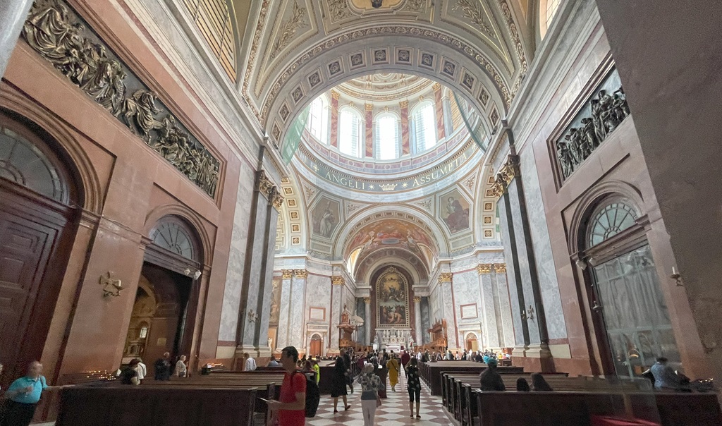 Drinnen wirkt der Raum erstmal nicht so groß, allerdings besteht das Chorgestühl aus 5 Reihen auf jeder Seite und es passen alleine im Altarraum damit schon mal 100 Menschen hin. Auch die Säulen außen haben einen Durchmesser von 3 Metern. Also mal wieder geklotzt, wie schon aus Budapest gewohnt.