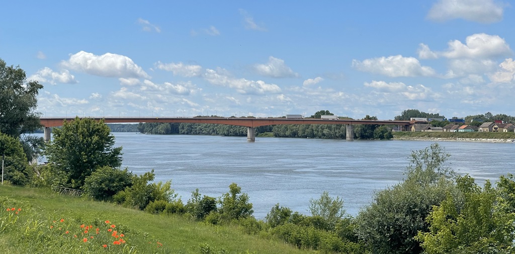 Jetzt habe ich die Donau wirklich verlassen, die letzte Brücke war die EU Außengrenze Serbien – Kroatien. Ich bin ganz gut rübergekommen. Die Grenzer haben ja immer die Ruhe weg. Der ältere Herr aus Belgien, vor mir, muss seine Dachbox öffnen, hätte ja ein Flüchtling drin sein können. Ich zeige mein Fahrrad und darf wieder rein.
