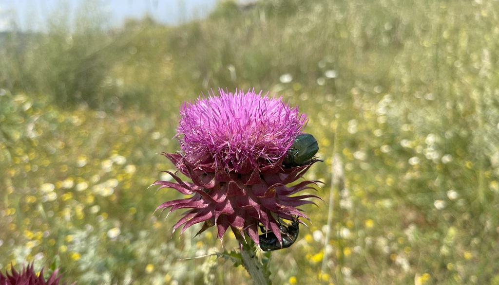 Eine kurze Wanderung um den Ort, wieder mal in der Mittagshitze, ist zwar schweißtreibend aber sehr schön. Ein recht ursprünglicher Fischerort an der Steilküste. Die Tour führt mich über den Hügel zu dem Aussichtspunkt mit Bunker und schöner Übersicht über den See. Die Vegetation besteht aus wilden Blumenwiesen, es gibt viele Insekten, sehr schöne hellblaue Libellen und große, schwarze, fliegende Käfer.